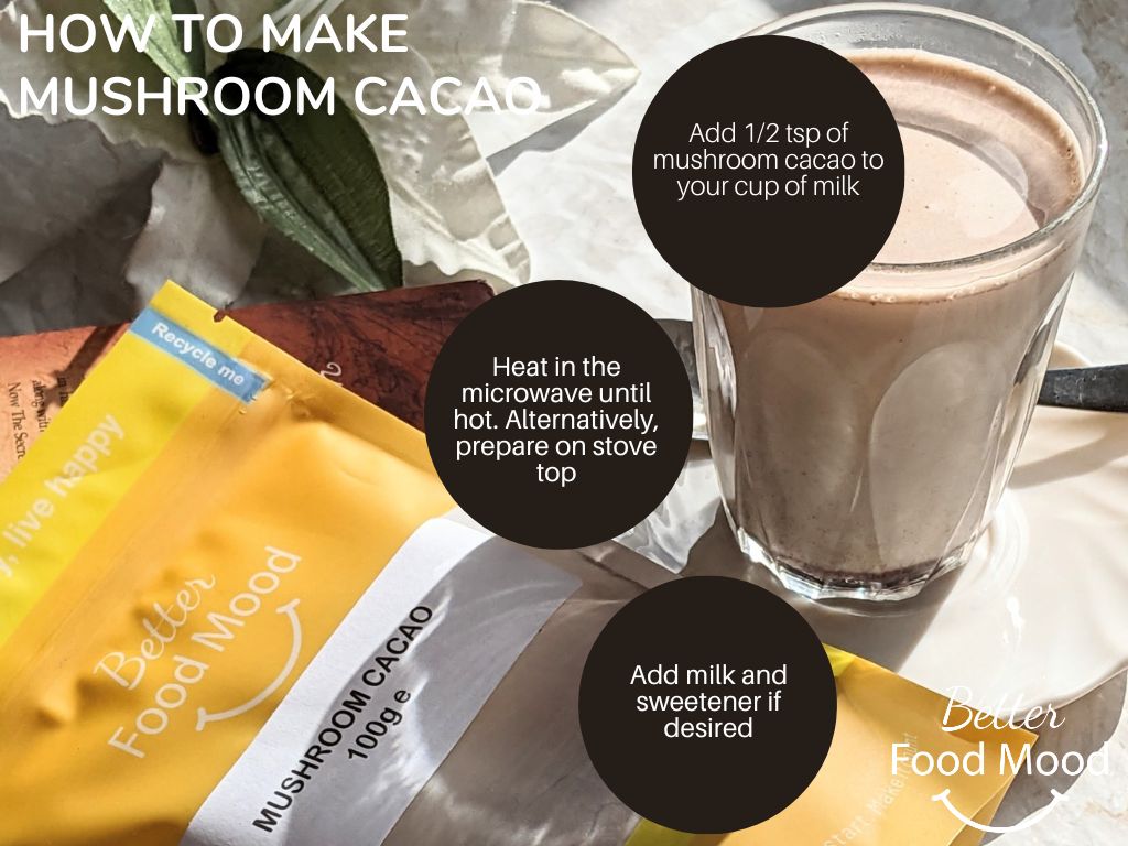 - Ingredients:Raw Cacao, Tremella Mushroom, Ashwagandha, Reishi Mushroom